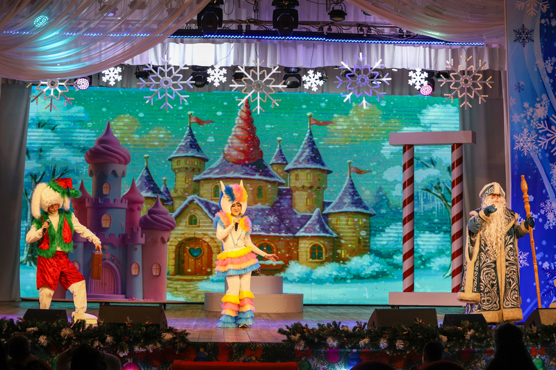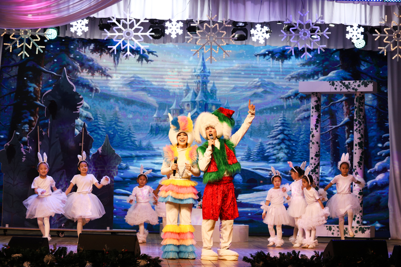 Жаңа жылдық ертеңгіліктер аясындағы қойылымға «Аманат» би мектебінің бишілері де қатысып, балаларды би мен ойын-сауық, мереке әлеміне тартты. Сонымен қатар Аяз ата мен Ақшақармен бірлесіп шырша жанында ән салып, би биледі.