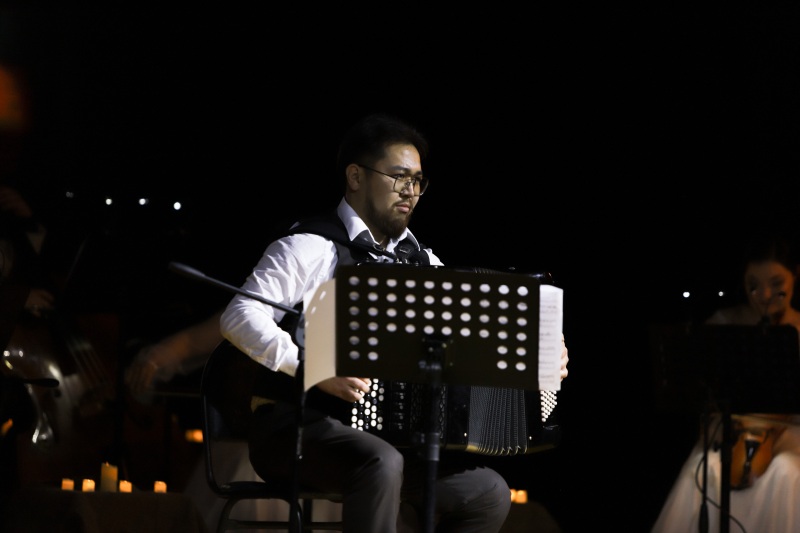 Ішекті аспаптардың нәзік үнімен үндесе төгілген классикалық музыка мен заманауи туындылар тыңдарманына ерекше әсер сыйлап, музыканың ішкі иірімі мен бояуын ашуға, жүрекпен сезінуге мүмкіндік берді. Бағдарламада Республикалық байқаулардың лауреаты Серікболсын Бекмолдин, Алан Бектемір, Гәкку» би ансамблінің әртістері Альмира Жолдаңғар мен Айдана Нұрланова өнер көрсетті. Сонымен қатар Мадиар Абай жеке баянда Joseph Cosma «Autumn leaves», Richard Galliano «Tango pour Claude» шығармаларын шеберлікпен, тамылжыта орындап, көрермен қошеметіне бөленді. Бұл кештің басты ерекшелігі — қобыздың мүмкіндігін кеңінен ашып, оны тек дәстүрлі аспап ретінде ғана емес, камералық музыканың толыққанды әрі әмбебап тілі ретінде таныта білуінде. Әуендер бірде сырлы тыныштыққа, бірде құштарлық пен еркіндікке толы сезімдерге жетелеп, музыка мен жарық, қозғалыс пен дыбыстың үйлесімі арқылы көрерменге ерекше эмоциялық әсер сыйлады. Камералық форматтағы бұл концерт музыканы терең сезініп, әр дыбыстың ішкі тынысын естуге мүмкіндік берген мазмұнды әрі әсерлі өнер кеші ретінде есте қалары сөзсіз.