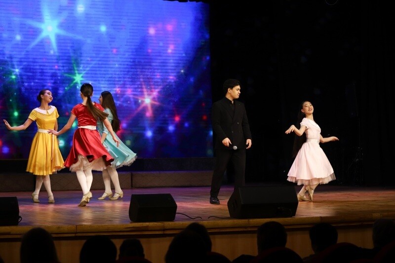 Сахна төрінде филармонияның танымал солистері өнер көрсетті. Аякөз Қалмағанбетова, Саида Сағди, Алан Бектеміров, Анастасия Мельник, Алтынбек Бектемір, Аманғали Жұматаев, Арай Букаева және Марина Зяблинцева секілді өнерпаздар көрерменге жүрекке жылы тиетін әндерді тарту етті. Сонымен қатар «Гәкку» би ансамблі дайындаған хореографиялық нөмірлер концерттің көркін аша түсті.